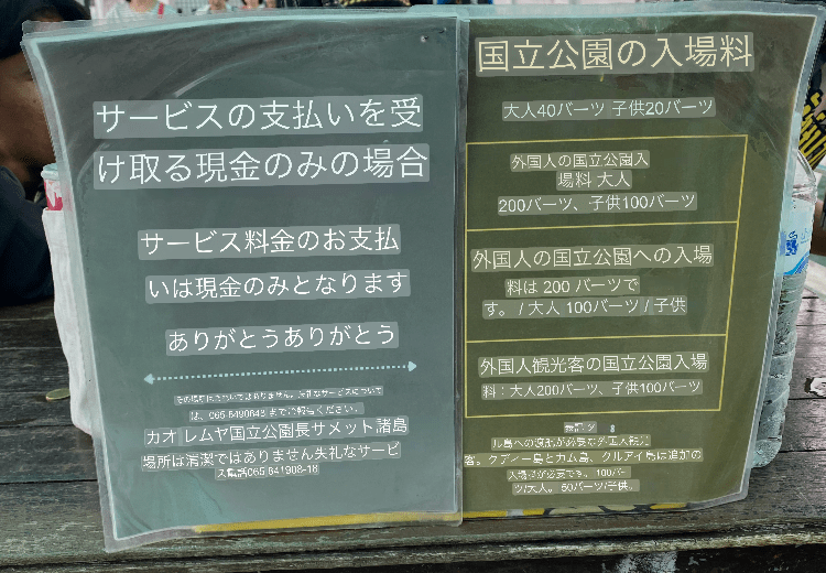 ・タイ人は、大人40バーツ、子供20バーツ。